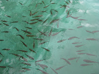 Põhi on valge, läbipaistev vesi ei reeda tegelikku sügavust. Erinev floora on lopsakas ja vaheldub igal sammul. Püüan jälgida jalgteed ja mitte sügavasse vette libiseda. Järgneb sild sillale, aste astmele, üks langus teise järel. Rääkida on võimatu. Olen nagu hüdroelekrijaamas. Ümberingi kohiseb ja müriseb, sekka lindude sirin. Kalad ja pardid jälitavad meid. Vesi mullitab ja vahutab. Iga järgneva käänaku taga võimutseb järjest suurem kosk ja müra. Niiskus suureneb. Õhk muutub järjest rohkem vetikalõhnaliseks ning kogu olemine muutub märjaks. Pealegi arvab ilmataat, et oleme siiski veel liiga kuivad ning avab